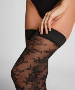 Hunkemöller Bas Autofixants 30 Denier Dentelle Anti Ladder- Noir